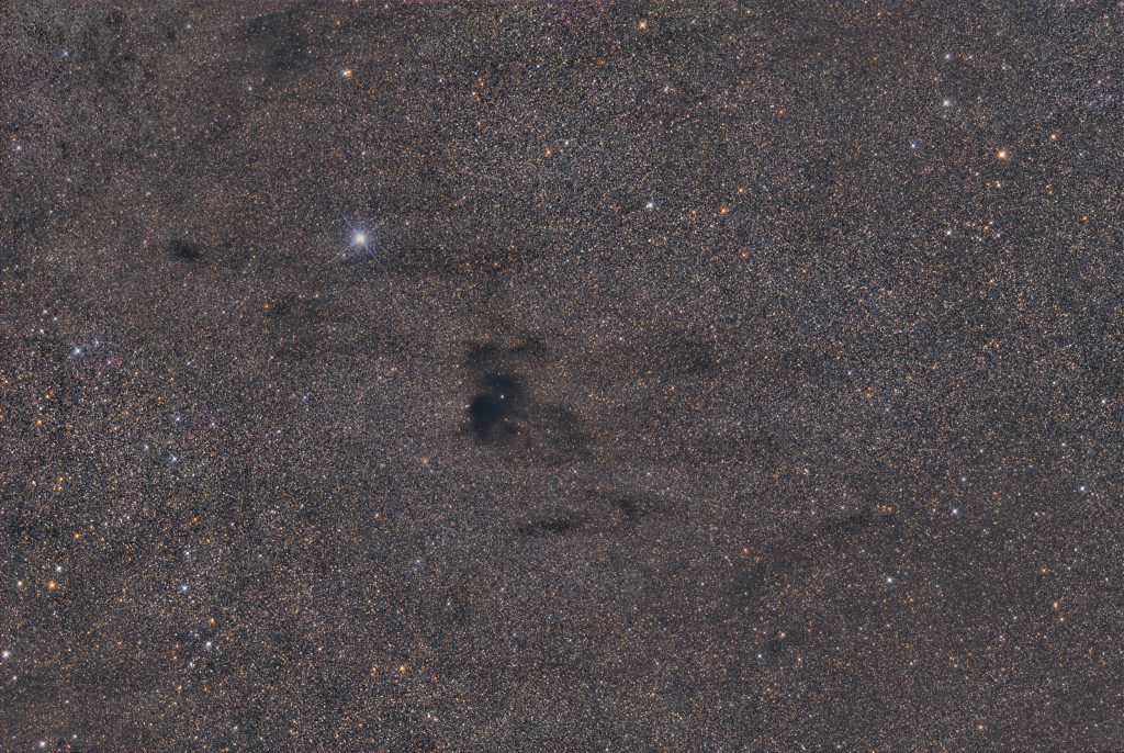 Dieser Dunkelnebel im Sternenmeer habe ich zusammen mit Martin Nischang mit dem TAK 160 aufgenommen. Belichtet wurden 80x180s mit dem Clear Filter. Entwickelt habe ich das Bild komplett in PixInsight.