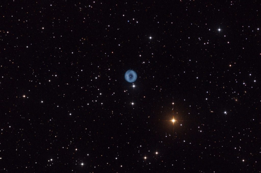 Der planetarische Nebel IC 5148 (Spare Tyre-nebula) befindet sich in etwa 3.800 Lichtjahren im Sternbild Kranich. Er dehnt sich mit einer Geschwindigkeit von mehr als 50 Km/sec aus und ist damit einer der am schnellsten expandierenden PNs.