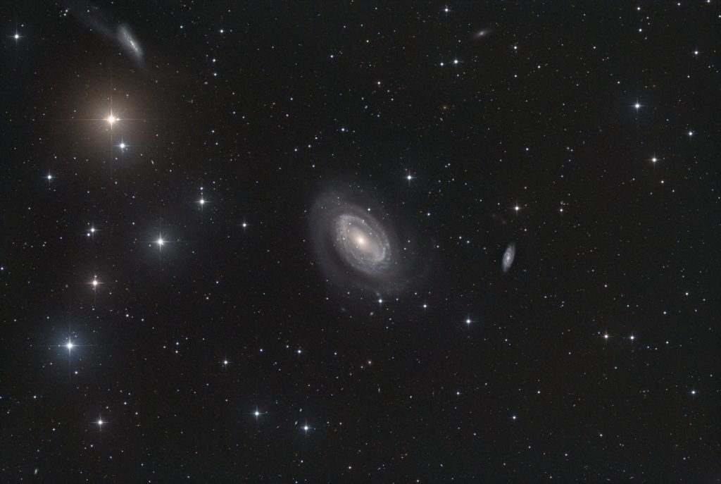 Die Balkenspiralgalaxie NGC 4725 bildet gemeinsam mit NGC 4712 und NGC 4747 das optische Galaxientriplett Holm 468. Zusätzlich ist NGC 4725 gravitativ an die Galaxie NGC 4747 gebunden, die auf diesem Bild einen Gezeitenschweif erkennen lässt. Aufnahmedaten waren: TS 12“ Newton-Astrograph, 18 x RGB á 3 min, Astronomik Deep Sky RGB Filter Set 2“, TS-Optics ToupTek Mono 2600MP G2.