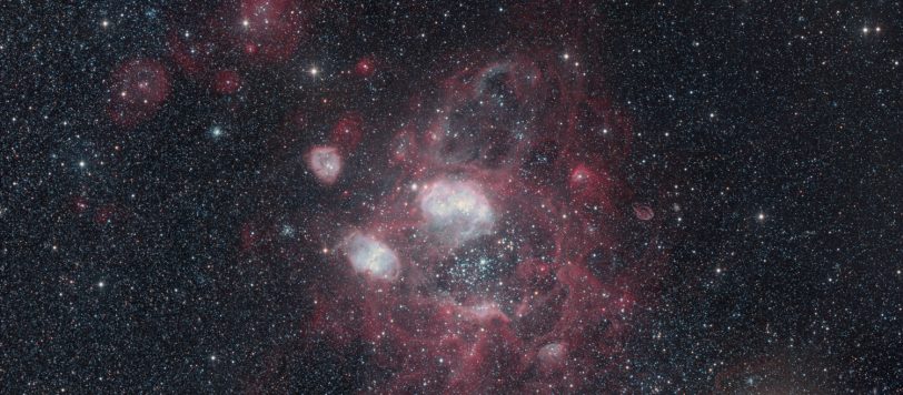 Operator : Kai-Oliver Detken Aufnahmedatum : 09.11.2025NGC 1763 in der Großen Magellanschen Wolke (GMW) ist ein Emissionsnebel mit eingebettetem Sternhaufen im Sternbild Schwertfisch. Der Nebel selbst wird auch unter LHA 120-N 11B bzw. ESO 85-EN20 katalogisiert und ist Teil des Nebelkomplexes N11. Seine scheinbare Ausdehnung beträgt etwa 3,0-5,0 Bogenminuten. Er ist außerdem bekannt als sogenannter […]